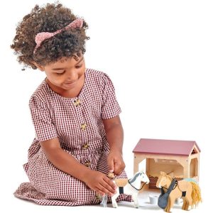 This working stable is perfect for grooming the ponies, with a brush, and 2 blankets. Feed the ponies with a bale of hay and a nose bag. Keep it all neat and tidy with the bucket, spade and broom, which can be hung up on some hooks on the inside wall. PONY GROOMING FUN: The…