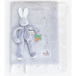 Wrap your little bunny in the sweetest of dreams with our Snuggle and Sooth Baby Gift Set – a perfect pairing of comfort and security. This thoughtfully curated set includes: Bunny Silly Buddy Pacifier Holder Gray – Super-soft, floppy and oh-so useful, this take-a-long pal will tie onto a baby's stroller, crib, or car