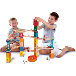 The Hape Quadrilla Super Spirals Wooden Marble Run Construction Building Set is a great way for the whole family to play and learn together. This marble run construction set is an excellent STEAM toy for helping your child develop their imagination, problem-solving skills, counting, color identification, spatial and re