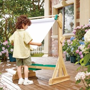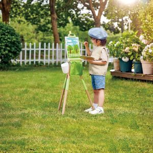 Immerse in Nature's Wonders with Hape's Outdoor Easel: Delve into the marvels of nature with Hape's durable wooden outdoor easel. An essential for budding artists on their creative journeys, this sturdy easel enhances outdoor creativity. Inspire with 'Natural Brushes': Encourage children to paint using "natural brushes