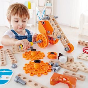 These sturdy blocks will inspire hours of play and generations of builders. Explore how different shapes can make towers higher or wider. How high can you build without toppling over? Build a house and tell stories about who lives there. Sturdy, solid, and including all of our favorite colors, this Hape block set inclu