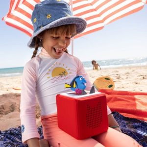 Meet the Toniebox – a new audio system designed for little listeners. Turn it on, pop a Tonie on top and let the audio adventure begin! Screen-free listening that inspires your kids’ imagination in ways that over-stimulating flashing screens do not. This set includes: – One red Toniebox – A charging station to power yo