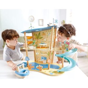 Learn how to care for our oceans with this ocean rescue base playset. Including two turtle figurines and five animals, children will help their turtle friends keep the ocean safe and clean and to look after any animals in trouble. The set features two floors to explore with plenty of activities like a spiral slide…