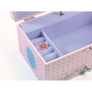 A special musical jewelry box for holding all your most valuable things; safe, secure and where you can find them. Turn the handle and open the top and it plays "Invitation to the Dance"as the ballerina spins on her stage; the song plays for 2.5 minutes. Watch the ballerina dance and spin in the mirror…