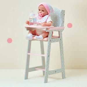 Make mealtime more magical for your little one's dolls with the Olivia's Little World Polka Dots Princess Kids Baby Doll High Chair. Featuring a classic gray finish with polka dots and pastel pink accents, this doll chair is a fun and functional addition to your child's bedroom or play area. Included with the toy high