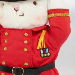 In celebration of FAO Schwarz 160th Anniversary we present the Toy Soldier Bunny! Ready for duty and adventure this dashing stuffed bunny is perfectly dressed in the iconic red toy solder suit and black hat. Poised in a salute, the way any good soldier stands, this plush bunny is anything but ordinary, and the perfect