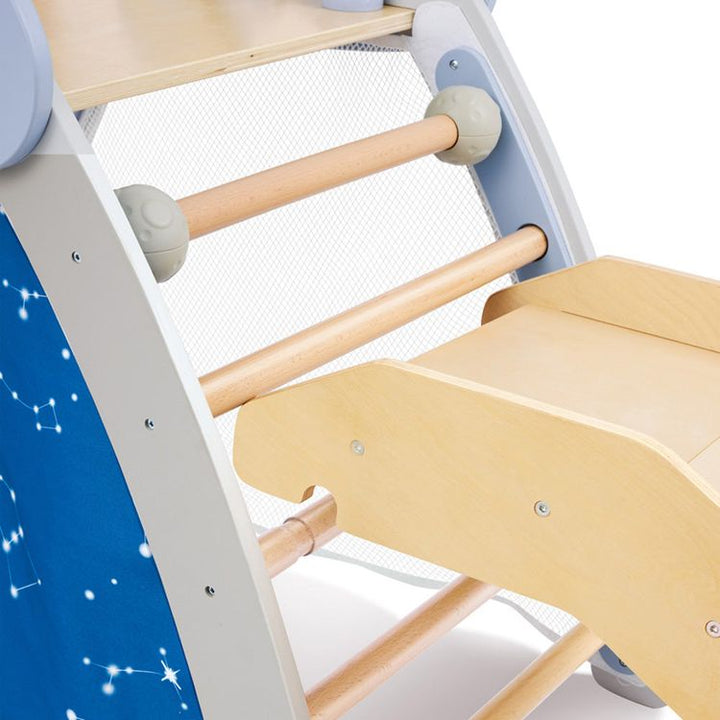 A durable, multifaceted climbing playset, designed for safety and developmental play. Rockets and stars theme smooth and soft surface double sided slide climbing frame- enhancing hand-eye coordination Separate tent space- multiple ways to play Ages 2-3 Years PLEASE NOTE: Due to item size/weight it is excluded from free