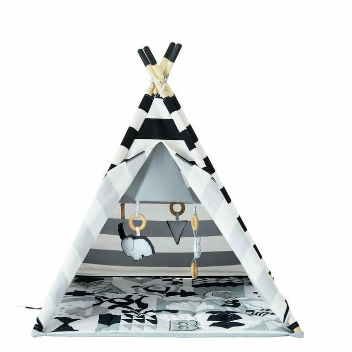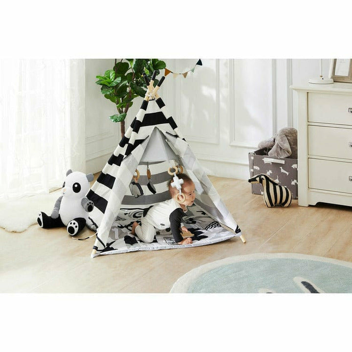 What could be better than a toy that grows with your baby? This convertible Baby Activity Teepees do just that. They start as a play mat for the tiniest of babies on their backs, and when they learn to roll over, they are enchanted by the graphics of the play mat. Then add the cover and hanging toys, and the curiosity
