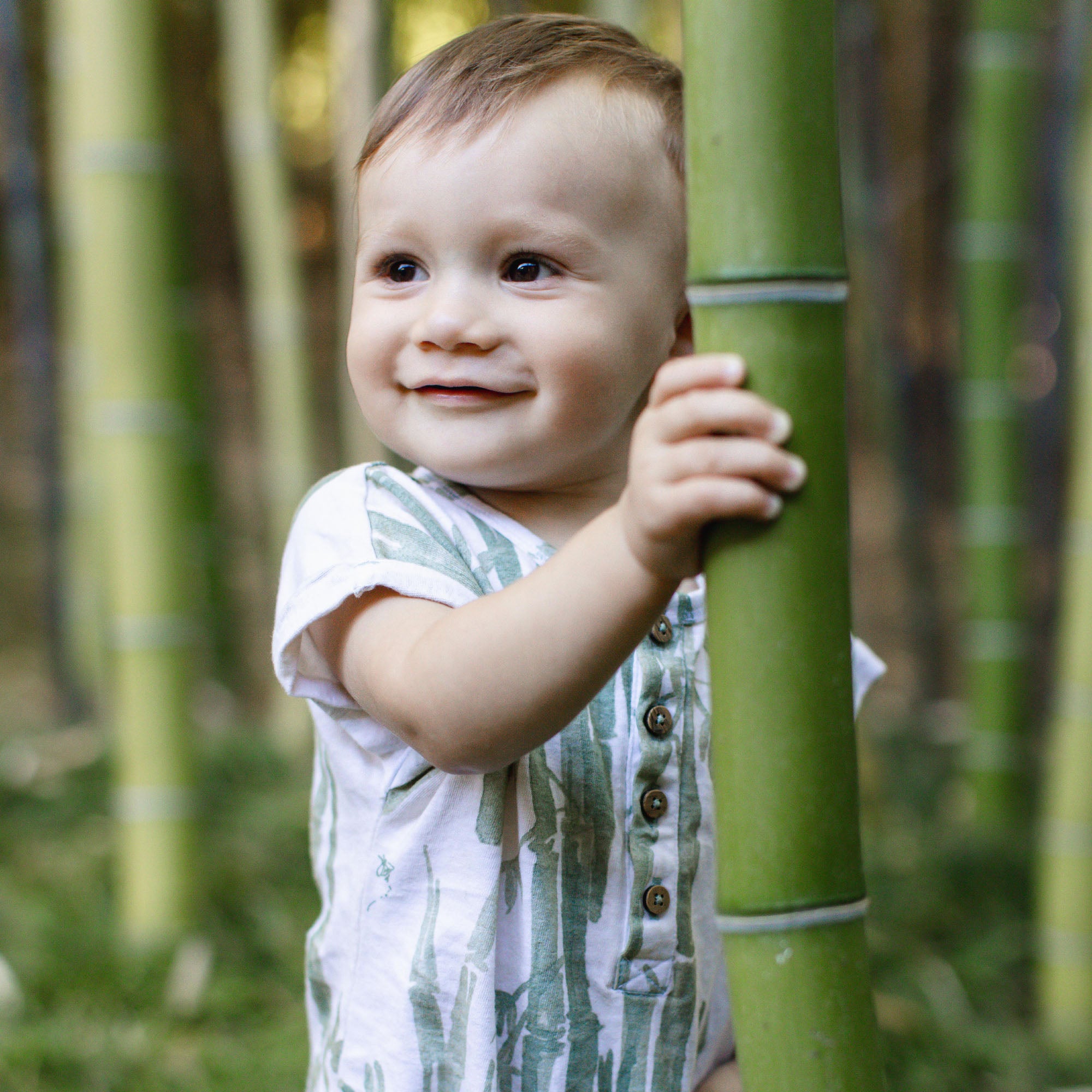 Your little one will stay cool and comfy in this bamboo forest romper. featuring short sleeves and shorts for all-day adventures and easy play.