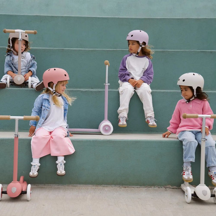 The Banwood Eco Helmet combines safety and sustainability, made from durable ABS recycled materials with a protective foam lining. Lightweight at 355 g, it features a dial-fit adjustment system, recycled chinstrap, and ventilation for comfort. Designed for ages 3+ and is CE-certified for reliable protection.  Size adju