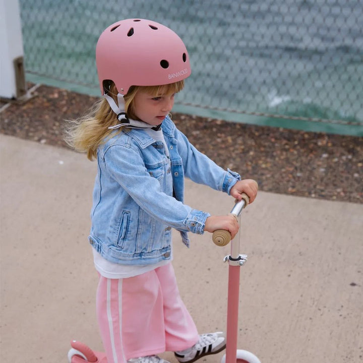 The Banwood Eco Helmet combines safety and sustainability, made from durable ABS recycled materials with a protective foam lining. Lightweight at 355 g, it features a dial-fit adjustment system, recycled chinstrap, and ventilation for comfort. Designed for ages 3+ and is CE-certified for reliable protection. Size adju