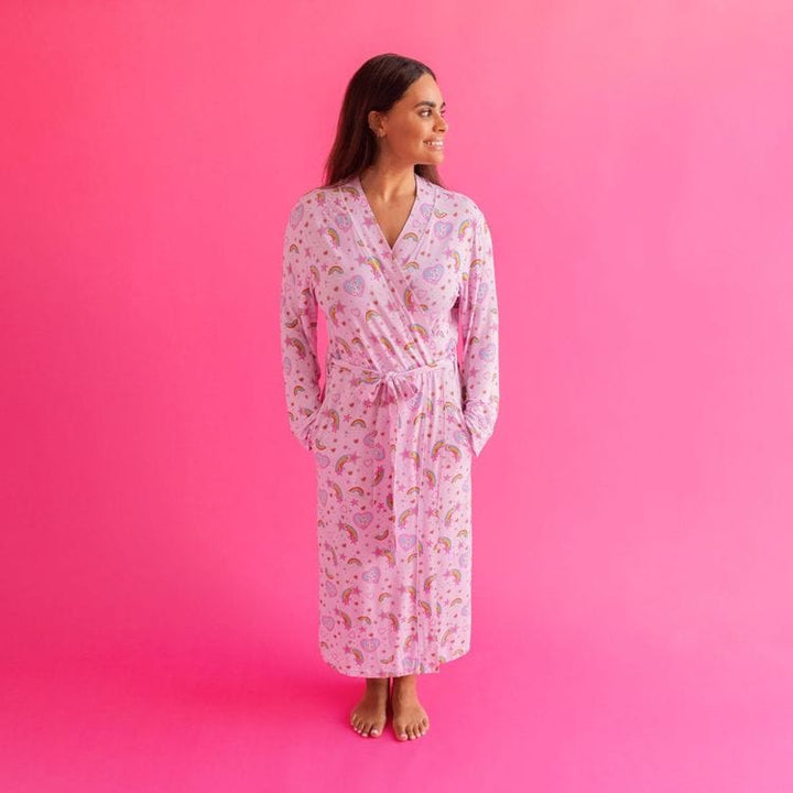 Experience pure luxury and comfort with our Luxe Robe. Featuring long, loose-fit sleeves and a midi-length design with side pockets and contrast piping, it offers comfort and style. The adjustable security ties inside and out ensure a perfect fit, while the cleverly positioned belt accommodates your growing bump. Made