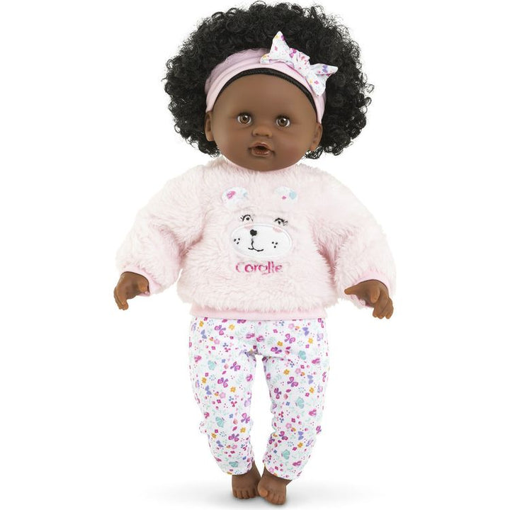 Bébé Calin Caroline is a 12- inch baby doll – the perfect size for little mommies and daddies to rock and cradle in their arms. Its soft body is posable like a real baby, and its sleepy eyes close when it's put down for a nap or at bedtime, also like a real baby. The doll's face, arms and legs are made of soft-to-the-t