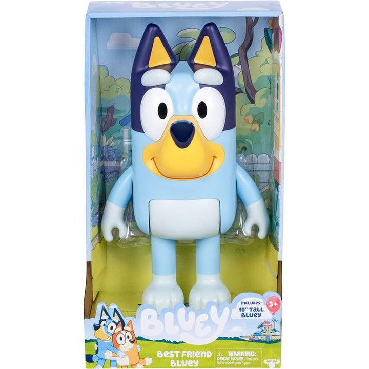 Best Friend Bluey is the biggest Bluey figure yet! Standing at a huge 10" tall, she is the perfect size for kids to take anywhere! Your child will have so much fun sharing adventures with their new best friend. This adorable big figure of Bluey is articulated and has moving arms and body allowing the figure to sit down