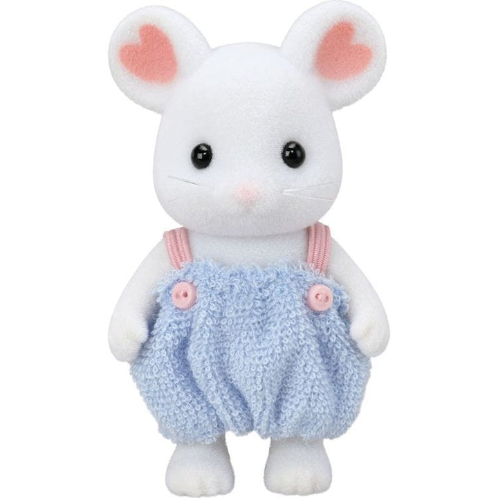 Bathtime is fun with this set that includes the Marshmallow Mouse boy and cradled baby with various bath accessories. The matching accessories include a baby bath, floor standing shower, bath toys and shower caps. The shower caps and bubbles can be placed on the figures' heads. The adorable bottles and soap are shaped