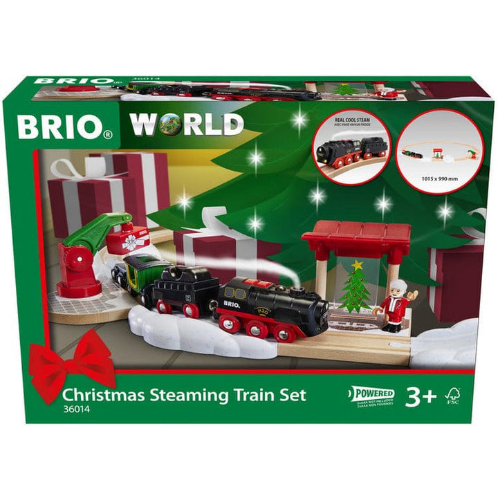 Add the finishing touches to your Christmas decorations with the 36014 Christmas Steaming Train Set. Build this Christmas tree train set around the base of your tree and watch the steaming train drive around with realistic steam effects. The battery-powered engine produces safe-to-touch steam as it moves and is easily