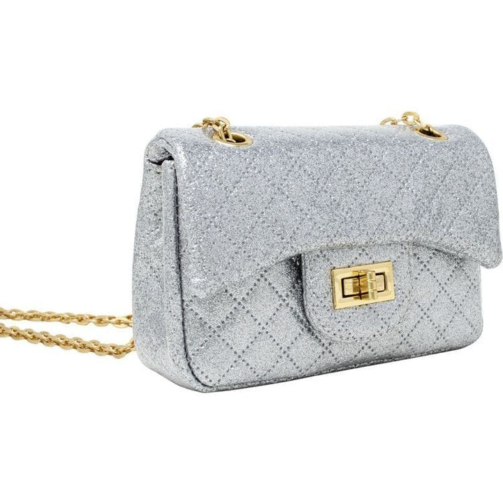 Classic Quilted Sparkle Mini Purse – Silver