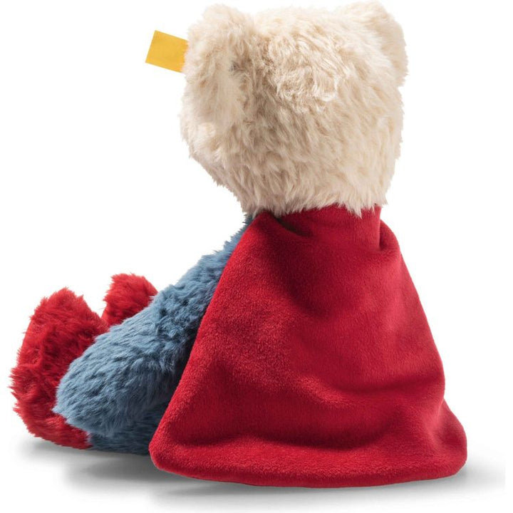 Bring superhero adventures to life with the DC Superman Teddy Bear! Measuring 12 inches tall, this cuddly plush bear is dressed just like the legendary Superman, complete with a blue suit, red cape, belt, and embroidered S-Shield emblem. Soft and huggable, he’s perfect for saving the day during playtime or snuggling up