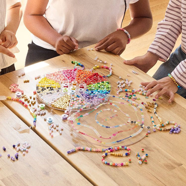 Gather up your besties, and get creative with our Design Your Own Bracelet Kit! Made especially for groups, our unique spinner case features a hand-picked selection of beads and elastic cord and easily spins on any surface so everyone can easily access whatever catches their eye. With 706 beads, including two alphabets