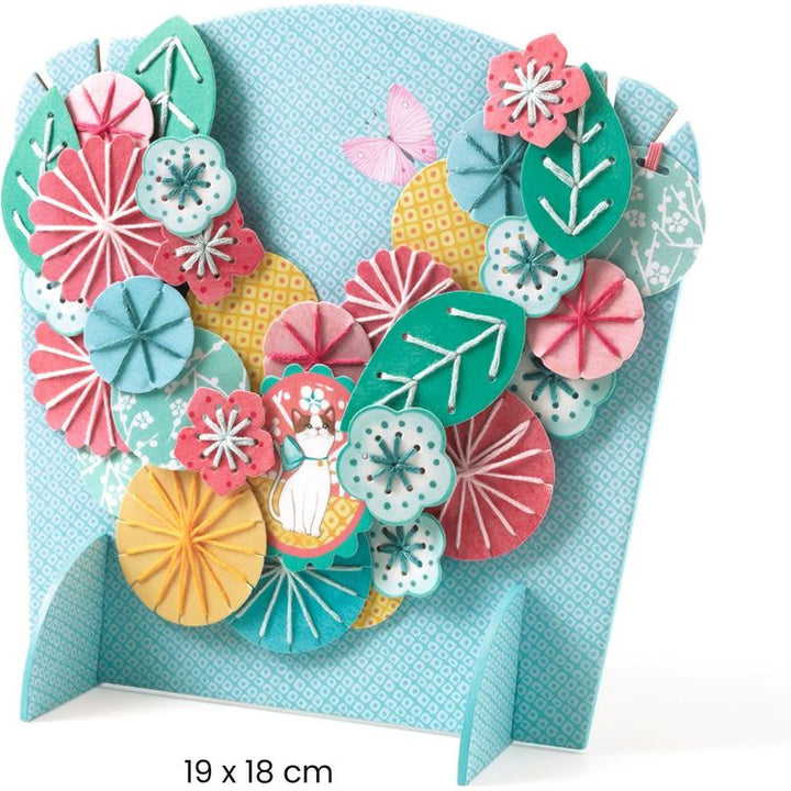A comprehensive creative kit to make an embroidered multi-row necklace. Flat-stitch embroidery is used on the pre-punched beads to make it easier to pass the needle through. Once embroidered, simply attach the flat rubber bands to the back of the beads to assemble them, creating 3 necklaces that you can wear on their o