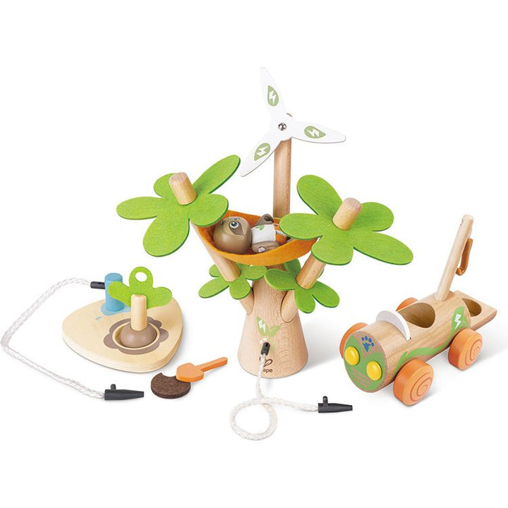 What better way to help your child learn the importance of the environment than with an adorable role-playing toy that encourages sustainability! Watch your kid’s imagination take off as they make believe with the baby sloth driver, “electric” car, wind turbine and tree-planting kit in this awesome play set. The tall t