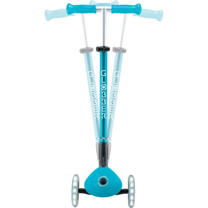 The most accessible Globber scooter—from price point to features—ELITE LIGHTS delivers the best value for your scooting kiddo. A 3-wheel scooter equipped with LED light-up wheels, a patented folding system, a 4-height adjustable T-bar, and a patented steering lock system, ELITE LIGHTS is packed with all the features yo