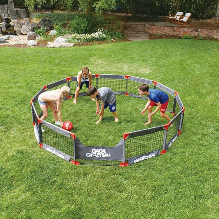 Gaga Ball (also known as Ga-Ga) is a group game similar to dodgeball. It has spread from camps and schools to now become a worldwide phenomenon that we’re bringing to your own backyard! EASY TO PLAY: The game is played in a “Gaga Pit”. The objective is to hit opponents below the knees while avoiding getting hit yoursel