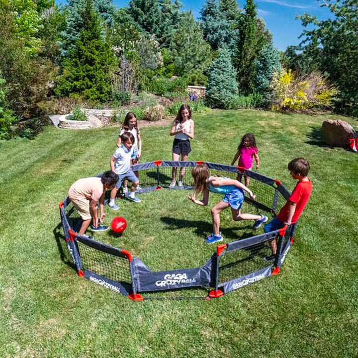 Gaga Ball (also known as Ga-Ga) is a group game similar to dodgeball. It has spread from camps and schools to now become a worldwide phenomenon that we’re bringing to your own backyard! EASY TO PLAY: The game is played in a “Gaga Pit”. The objective is to hit opponents below the knees while avoiding getting hit yoursel