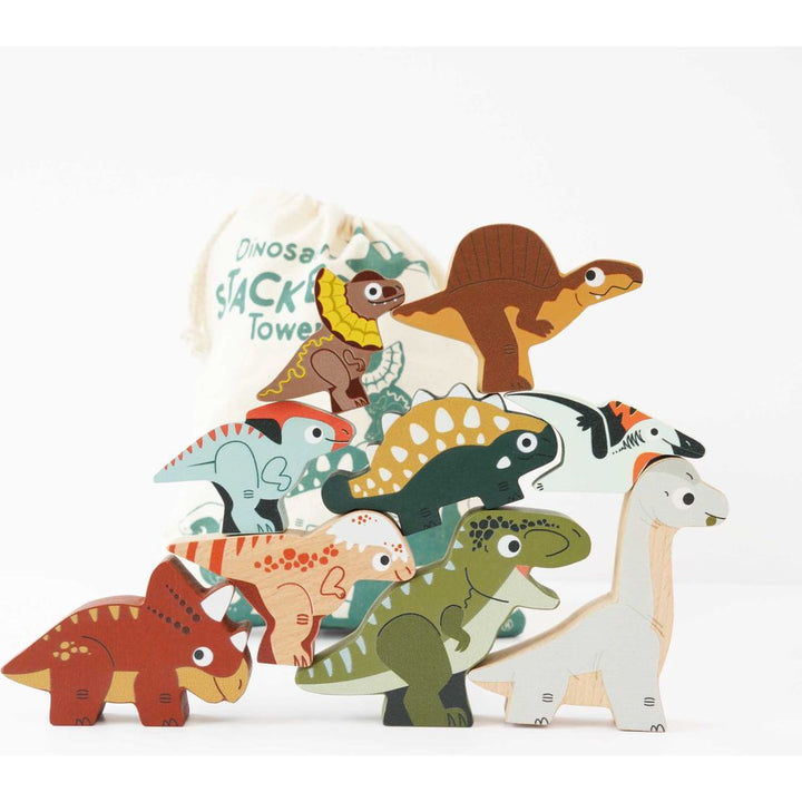 Journey back to the prehistoric age with these stacking dinosaurs! Offering double the fun with their unique design – one side showcases highly detailed painted dinosaurs, while the other side reveals an intricate fossil. Painted in non-toxic water-based paint, made from FSCTM-certified wood and completely plastic free