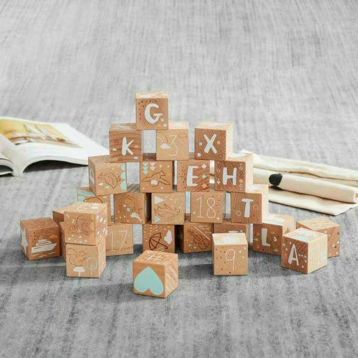 Features: Beech wood etched blocks designed by UK artist Lizzie MacKay, designed exclusively for Asweets. Set includes 27 blocks, includes all the letters of the alphabet, numbers 1-26, and one surprise block. Each block measures 1.75″ x 1.75″ x 1.75″ and etched and printed with non-toxic baby safe ink.  This set comes