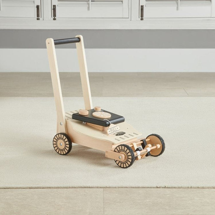 Your little landscaper will love our Lawn Enforcer!  They can release the gas cap and fill with pretend gas, then pull the ripcord to start the pretend engine.  Turning knobs and chunky wheels add to the charm of this fun mower.  The front wheel clackers make sounds when pushed while mowing the carpet in the playroom,