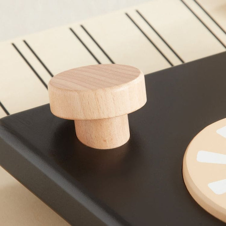 Your little landscaper will love our Lawn Enforcer! They can release the gas cap and fill with pretend gas, then pull the ripcord to start the pretend engine. Turning knobs and chunky wheels add to the charm of this fun mower. The front wheel clackers make sounds when pushed while mowing the carpet in the playroom,