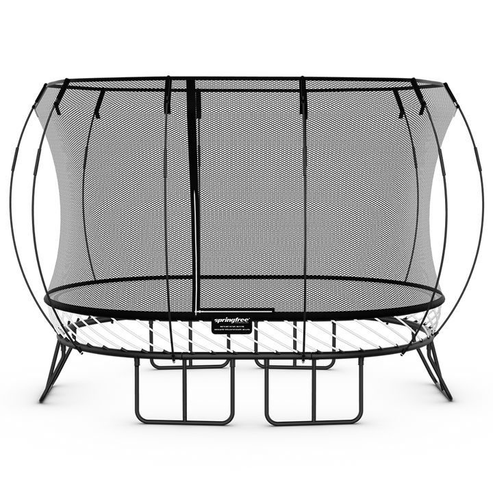 For the jumping enthusiast with a long and narrow yard. Perfect for the urban yard or tucked away in a space that is longer than wide. The Medium Oval trampoline provides 77 square feet of jumping freedom. Max Weight Capacity: 1500lbs Single Jumper Weight Capacity: 220lbs Trampoline Height: 9' Jumping Mat Dimensions: 8
