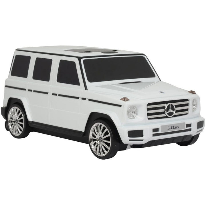 Officially licensed two-in-one Mercedes Benz G-class suitcase that can be used as both a suitcase and a ride-on push car. The large storage space is located in the car-look trunk and is reached by tapping the front car logo for storing carry-on luggage. By unlocking the top handle, it is simple to transform into a ride