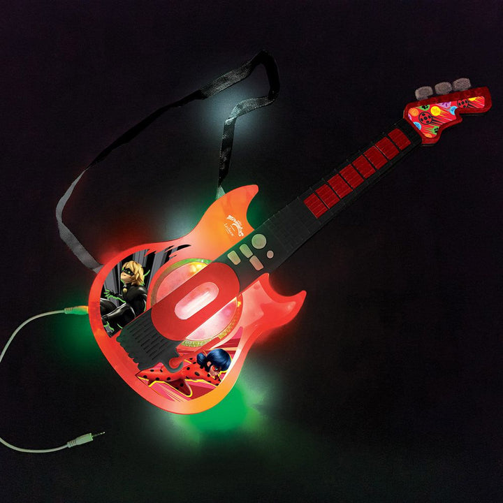 A great Ladybug electronic guitar and glasses with microphone to discover music while having fun and with style! 2 game modes are available for hours of fun: Mode 1: By pressing the guitar keys, the child can play frenzied guitar solos. Mode 2: By pressing the guitar keys, the child can play real notes and his own melo