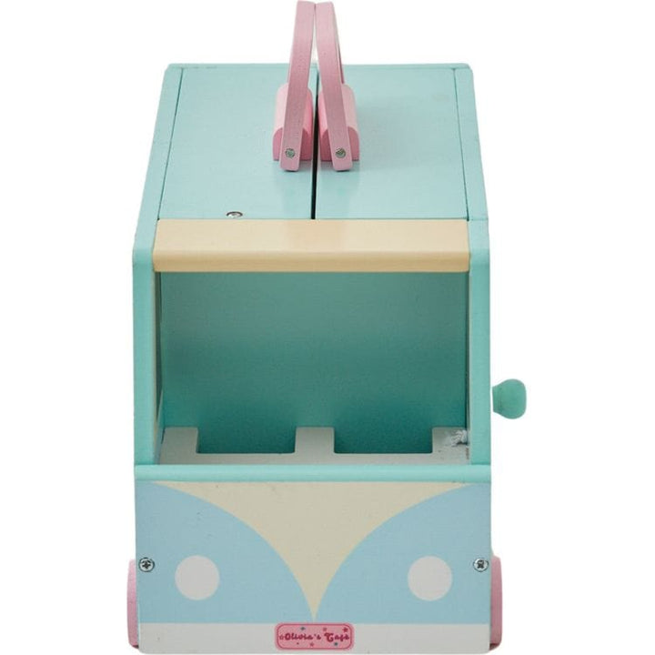 Packing all of the fun of imaginative doll play into one easily transportable wooden toy, this Olivia’s Café Portable Food Truck Dollhouse is for playtime on the go. Including café seating and a mini kitchen for your little one’s 3.5” doll figures, this adorable dollhouse is designed to fully open for hours of imagina