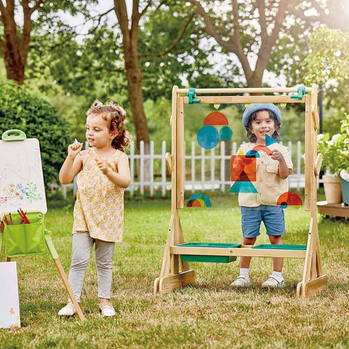 Immerse in Nature's Wonders with Hape's Outdoor Easel: Delve into the marvels of nature with Hape's durable wooden outdoor easel. An essential for budding artists on their creative journeys, this sturdy easel enhances outdoor creativity. Inspire with 'Natural Brushes': Encourage children to paint using "natural brushes