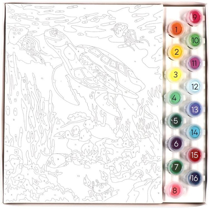 Create a stunning painting depicting a majestic sea turtle swimming among the coral reefs, and read facts about this endangered animal and its habitat with this paint kit for kids. Paint By Numbers Amazing Ocean is designed for kids 8+. Beautiful ocean-themed artwork has enough detail to yield an impressive result. De