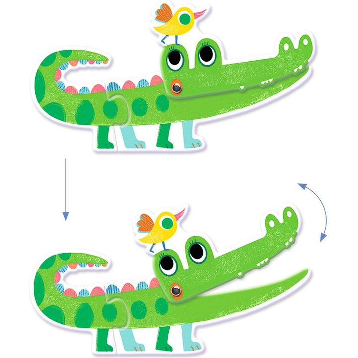 This gorgeous new addition to the Djeco Puzzle Duo is Animal Articulo! not only a puzzle to match animal body parts but each animal has a moveable hinge to make them move and dance! There are 12 2-piece puzzles that your child matches together. When you're not playing with your puzzle tidy the pieces away in the sturdy