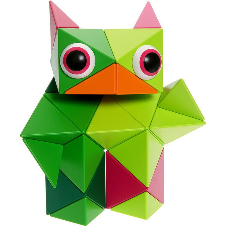 Bright Jungle colors abound in this 36-Piece Set includes: 6 octahedrons, 12 tetrahedrons, 12 half-tetrahedrons, 6 eyes (in total 36 pieces) + Leaflet + Limited Edition "Inspiration Book" With a large set you can either build one large construction or several smaller ones and share the process of creating with your fri