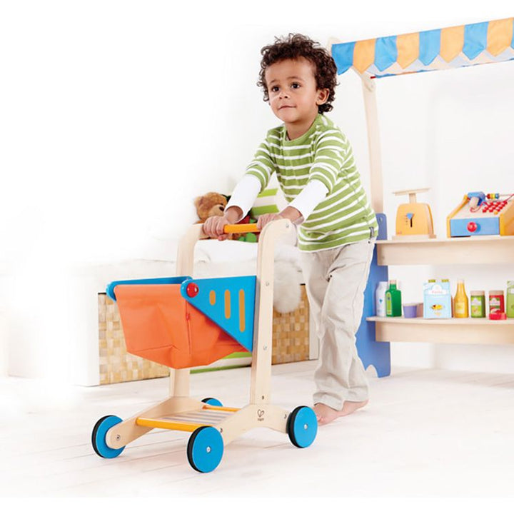 What should we buy today? Transport whatever fits in this handy carrier. Role play with your child as you "shop" through the house. Use the basket to carry toys . Boosts coordination, balance, and physical strength. Hours of creative fun play will result. This toy requires adult assembly. Durable child safe paint finish