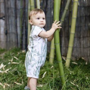 Your little one will stay cool and comfy in this bamboo forest romper. featuring short sleeves and shorts for all-day adventures and easy play. Watercolor bamboo print Super soft cotton Short sleeve romper Henley placket for easy dressing Reinforced snaps along the diaper line Rolled cuffs at arm and leg opening 100% organic cotton Style…